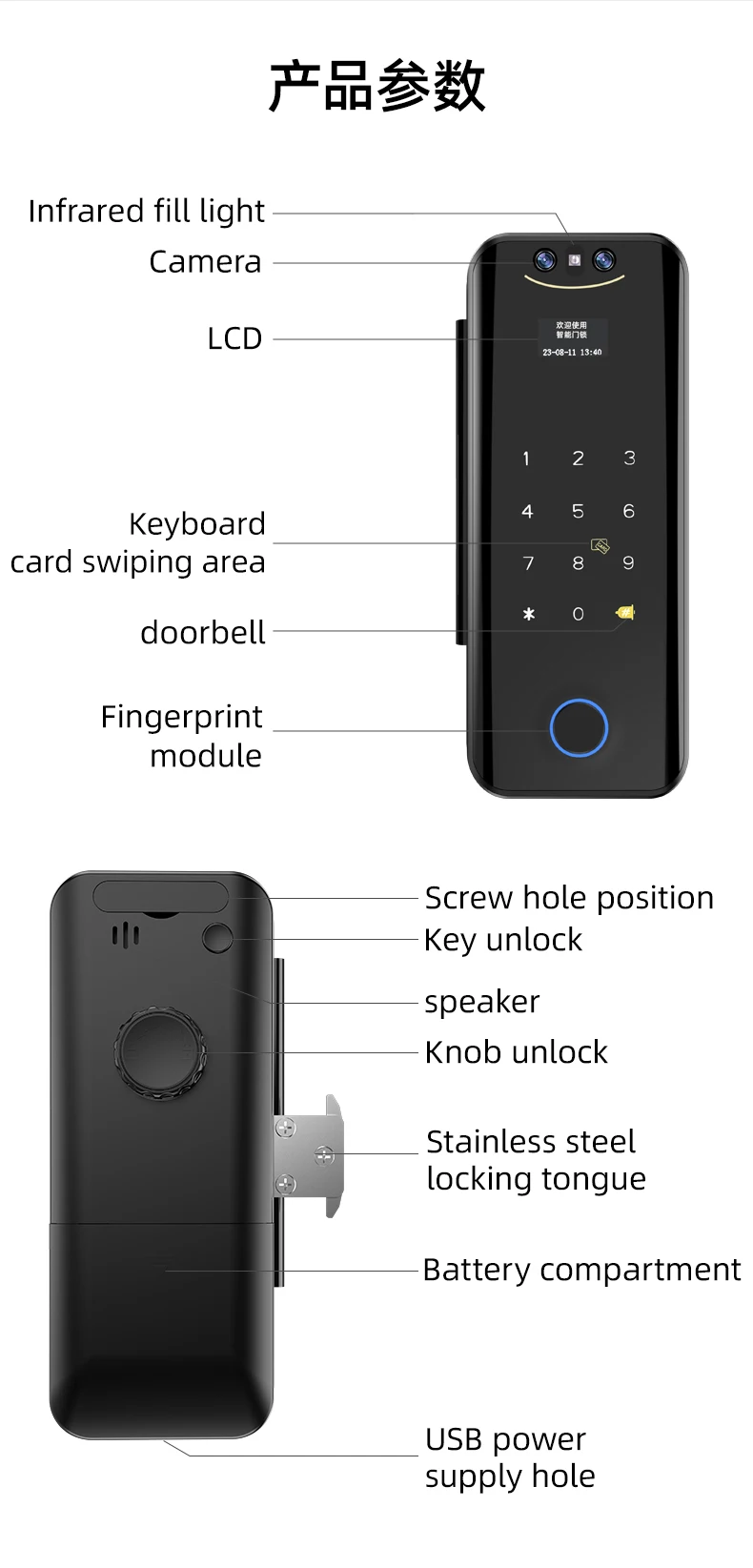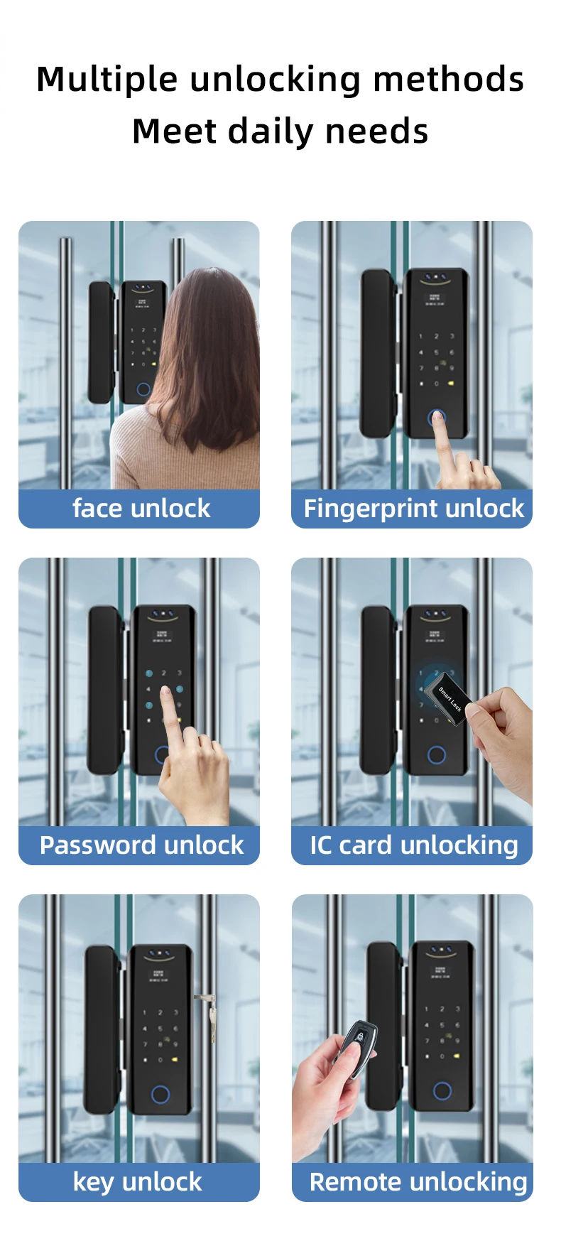 3D Face/Fingerprint(100pcs)/Password(100pcs)/IC Card(100pcs)/Mechanical key/Temporary password/NFC