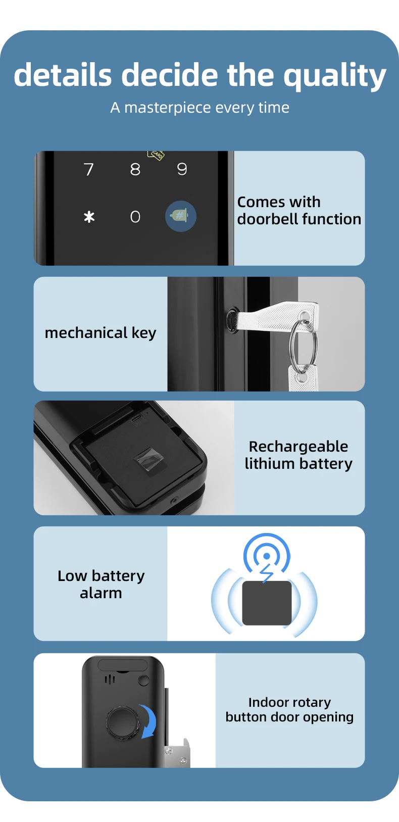 A:We are a professional smart locks manufacture with more than 10 years rich experience, own professional marketing team.