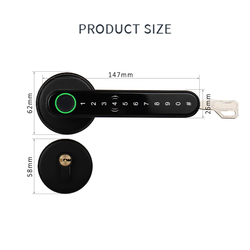 Function | TT Lock APP/tuya app Password Fingerprint IC Card Mechanical key total user:100pcs |